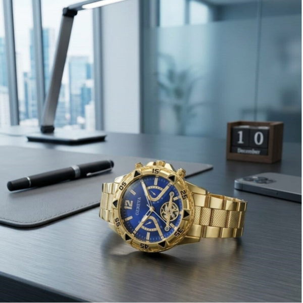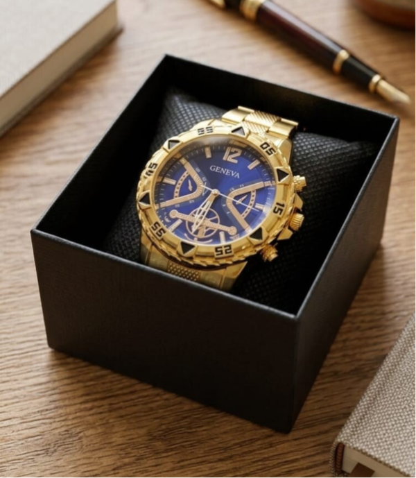 Elegante reloj de quarzo para hombre con correa metálica, Geneva. Incluye estuche de reloj