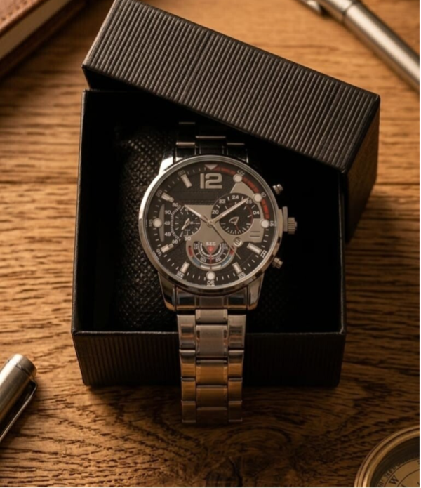 Reloj de pulsera para Hombre plata y negro. Correa metaliza de eslabones
