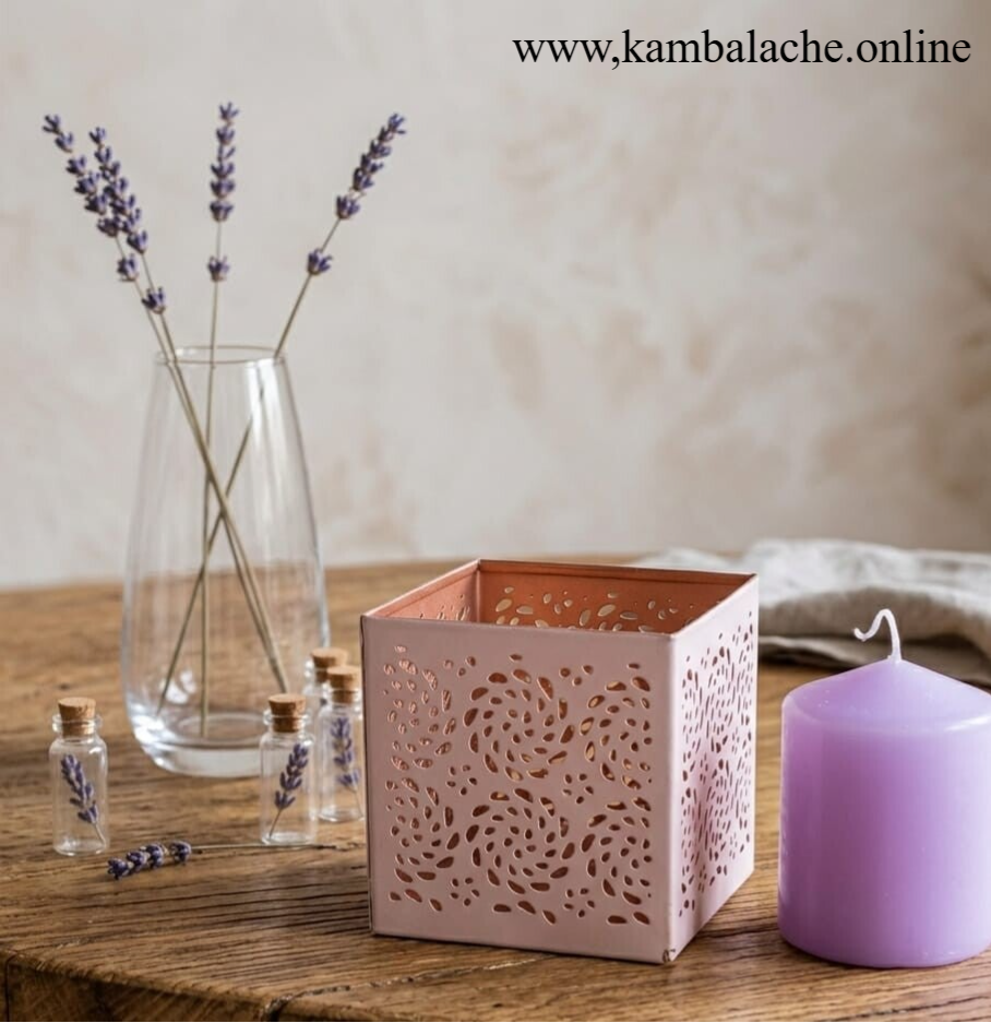Precioso portavelas en metal para cualquier ambiente. Incluye vela aromática SPA LAVANDA.