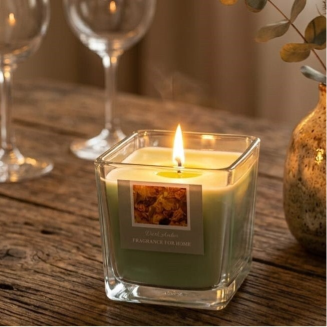 Vela perfumada (Aroma Dark ambar) en cristal. decoración y aroma sofisticado